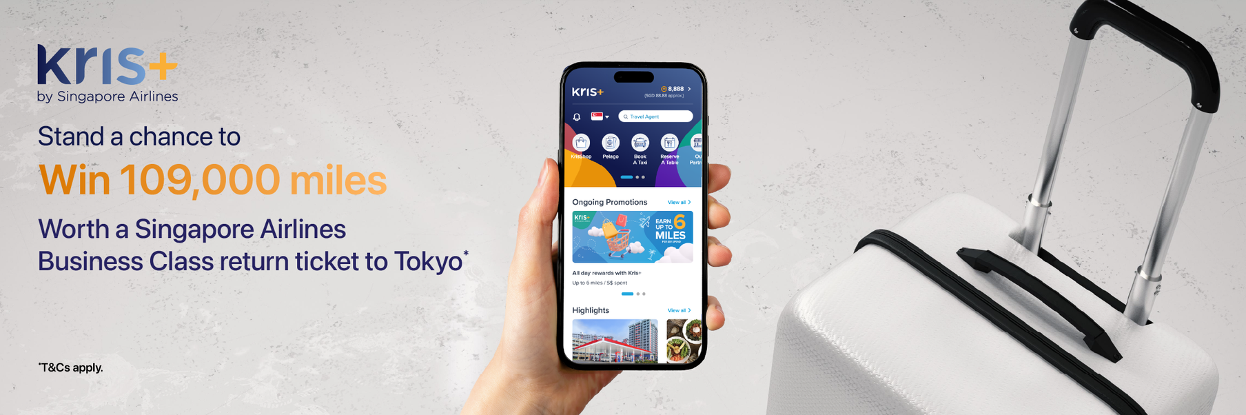 * Miles are credited directly into winner's Kris+ wallet. Winner has the option of transferring the miles to KrisFlyer within 21 days from the date of credit. Illustration of destination is based on Business Saver Award ticket redemption. Winner may choose to redeem a Singapore Airlines flight to any other destination of his/her choice. By participating in the 109,000 miles Lucky Draw, you agree that Elush (T3) Pte Ltd, Singapore Airlines Limited, and/or Kris+ Pte Ltd may collect, use and disclose your personal data for the purpose of administering this Lucky Draw, including contacting you for the administration of prizes in relation to this Lucky Draw.