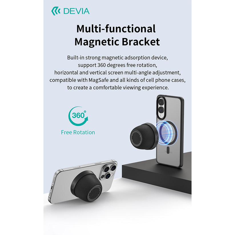 • MULTI-FUNCTIONAL MAGNETIC BRACKET: Built-in strong magnetic adsorption device, support 360 degrees free rotation, horizontal and vertical screen multi-angle adjustment, compatible with MagSafe and all kinds of cell phone cases, to create a comfortable viewing experience.