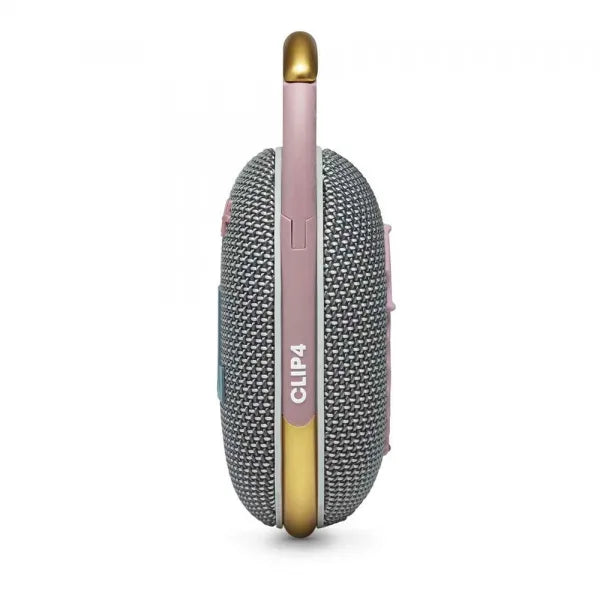JBL Clip 4's ultra-portable design goes great with the latest styles, and its colorful fabrics and expressive details make it look as great as it sounds.