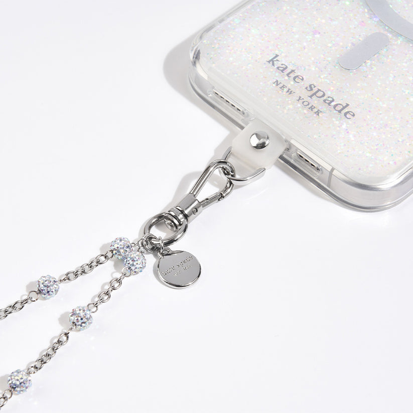 Carry your phone like a clutch and go hands-free for a night on the town or when out running errands with the Kate Spade Phone Charm! This Phone Charm is designed to fit with all phone cases and allows you to charge your phone without removing it.