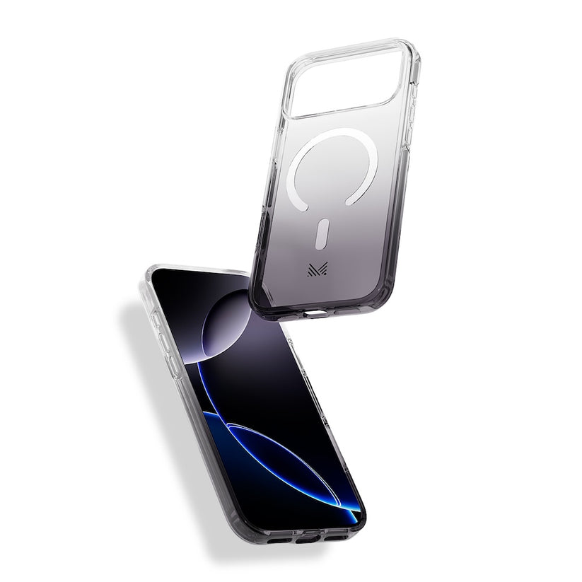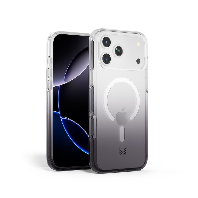 The Monocozzi ESSENTIALS Shockproof Hybrid Case for iPhone 17 offers a sleek, minimalist design without compromising protection. Its dual-layer TPU and polycarbonate construction absorbs shocks and resists scratches. Magnetic wireless charging compatible, it provides easy access to buttons, ports, and cameras. Transparent/Charcoal design gives a modern, premium look.